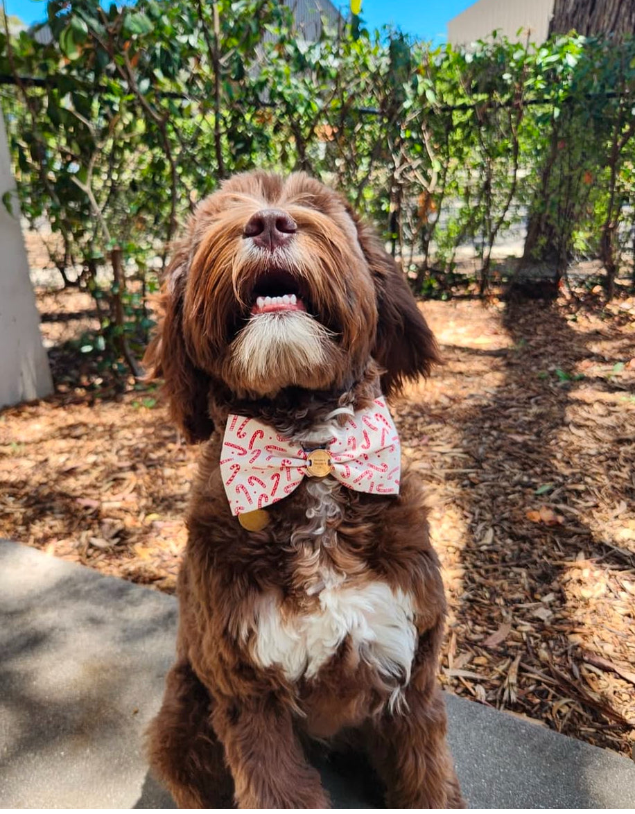 Our handcrafted bow ties are the definition of dapper—with a dash of mischief. Designed to slide easily onto your pup’s collar, they bring the charm without the hassle. Want it personalised? Just give us their initials and we’ll make it extra-special.
