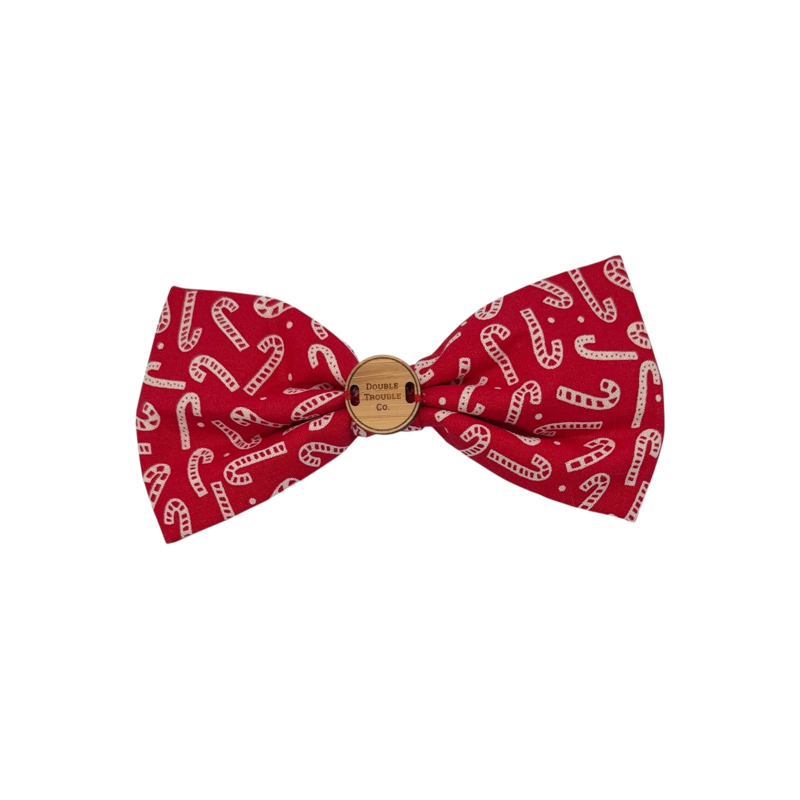 Add a sweet touch to your fur friend's outfit with the "Candy Cane Cutie" sailor bow. This playful bow features a bright red and white stripe design, just like a classic candy cane.