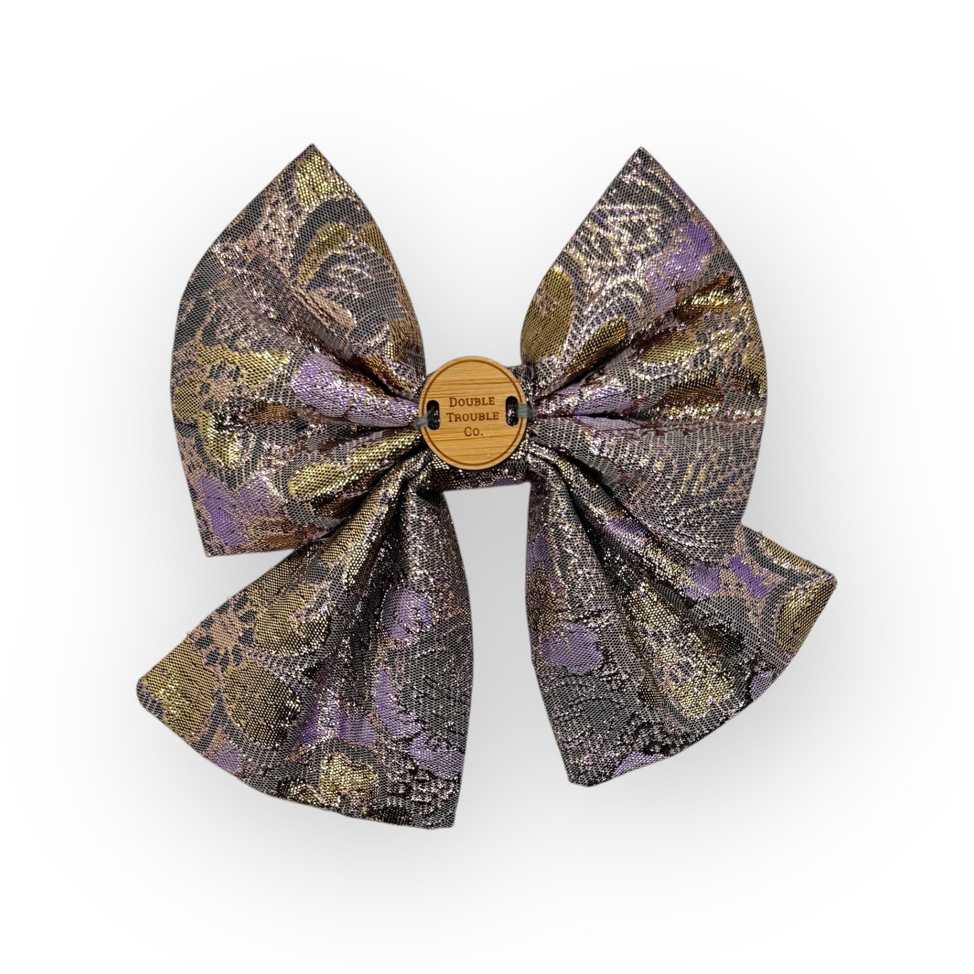 Glam up your pooch with the "Golden Child" sailor bow! This sailor bow features a stylish purple and gold floral pattern. Perfect for pups that are their humans golden child.
