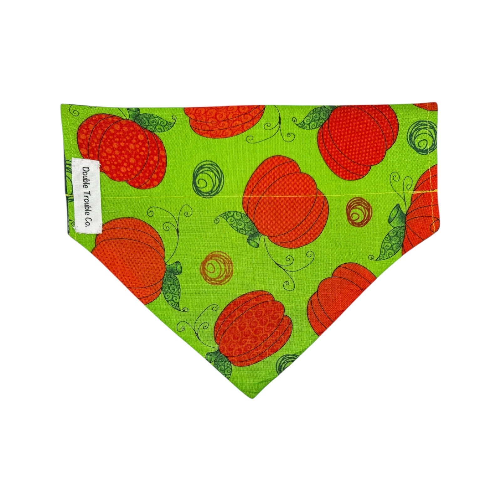 Gourd-geous green fabric with bright orange pumpkins.